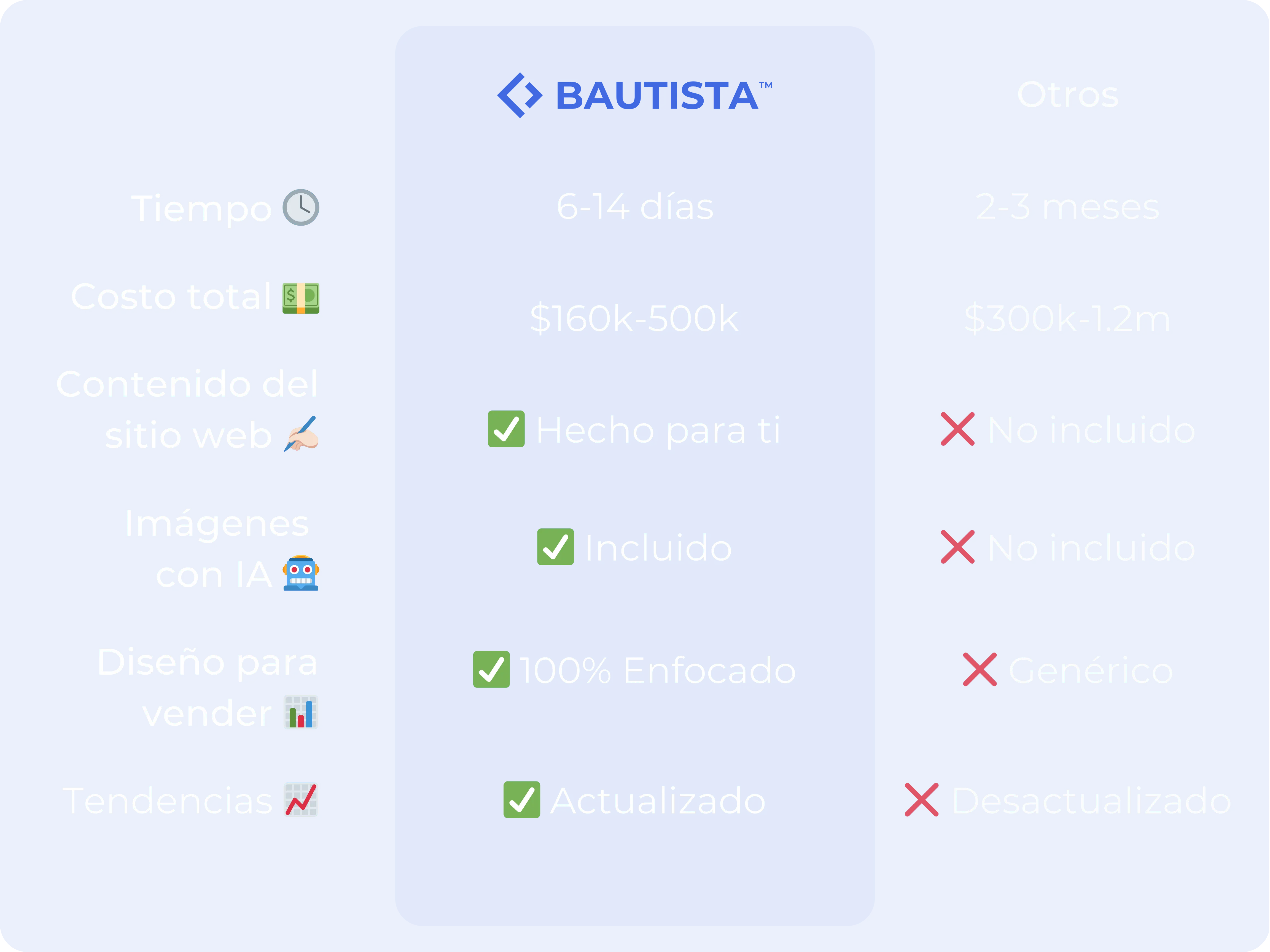 Entre 1 y 2 semanas, dependiendo de la complejidad. Nos aseguramos de entregarte un sitio optimizado y funcional lo antes posible para que empieces a generar clientes rápidamente.